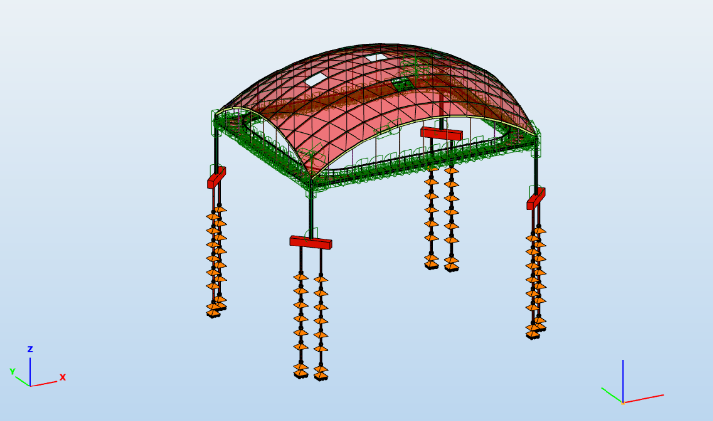 Twelve box-in-box steel domes